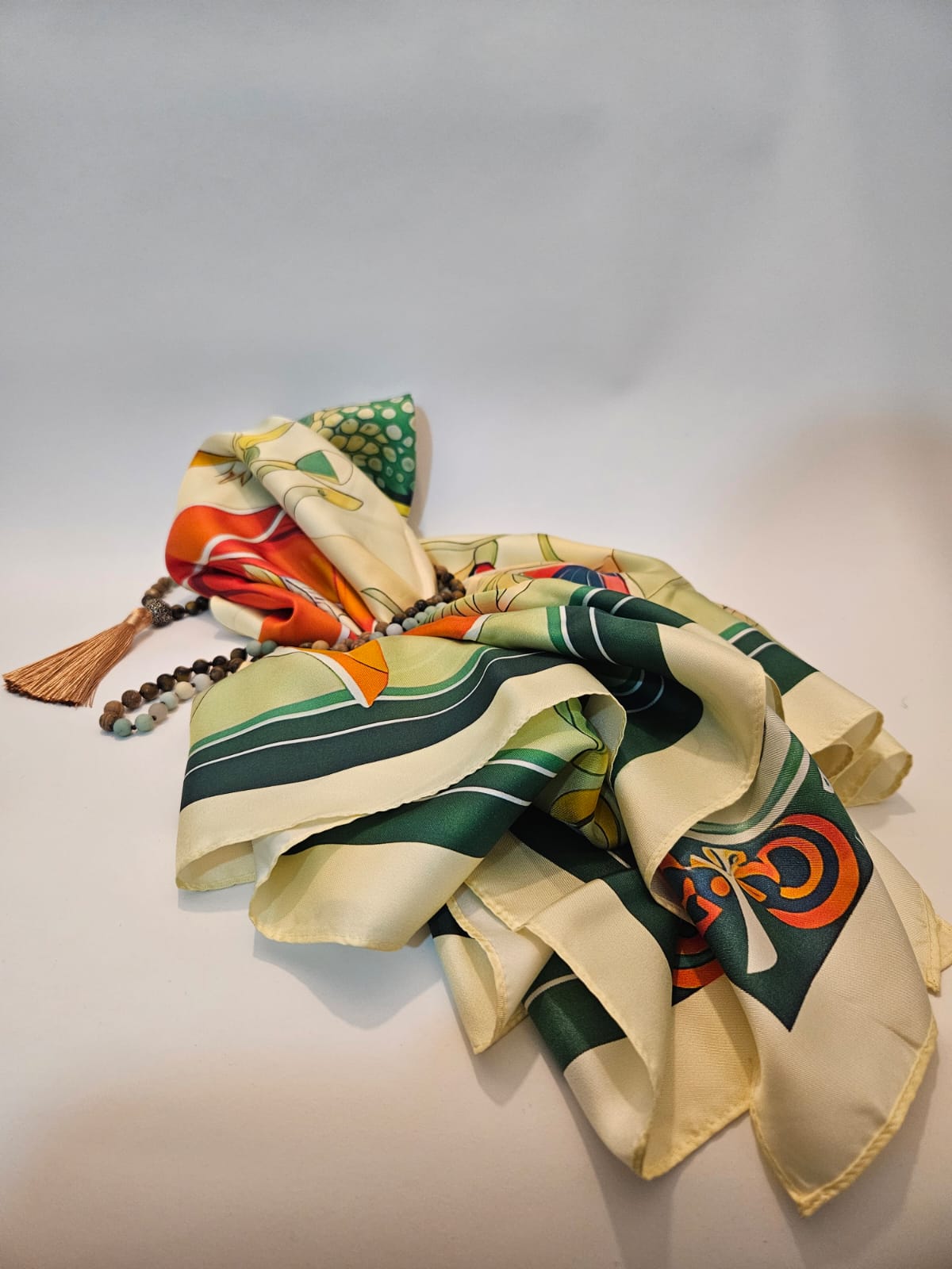 *צעיף מבד 100% משי שנתפר בקפידה, בגודל 92 ס"מ.