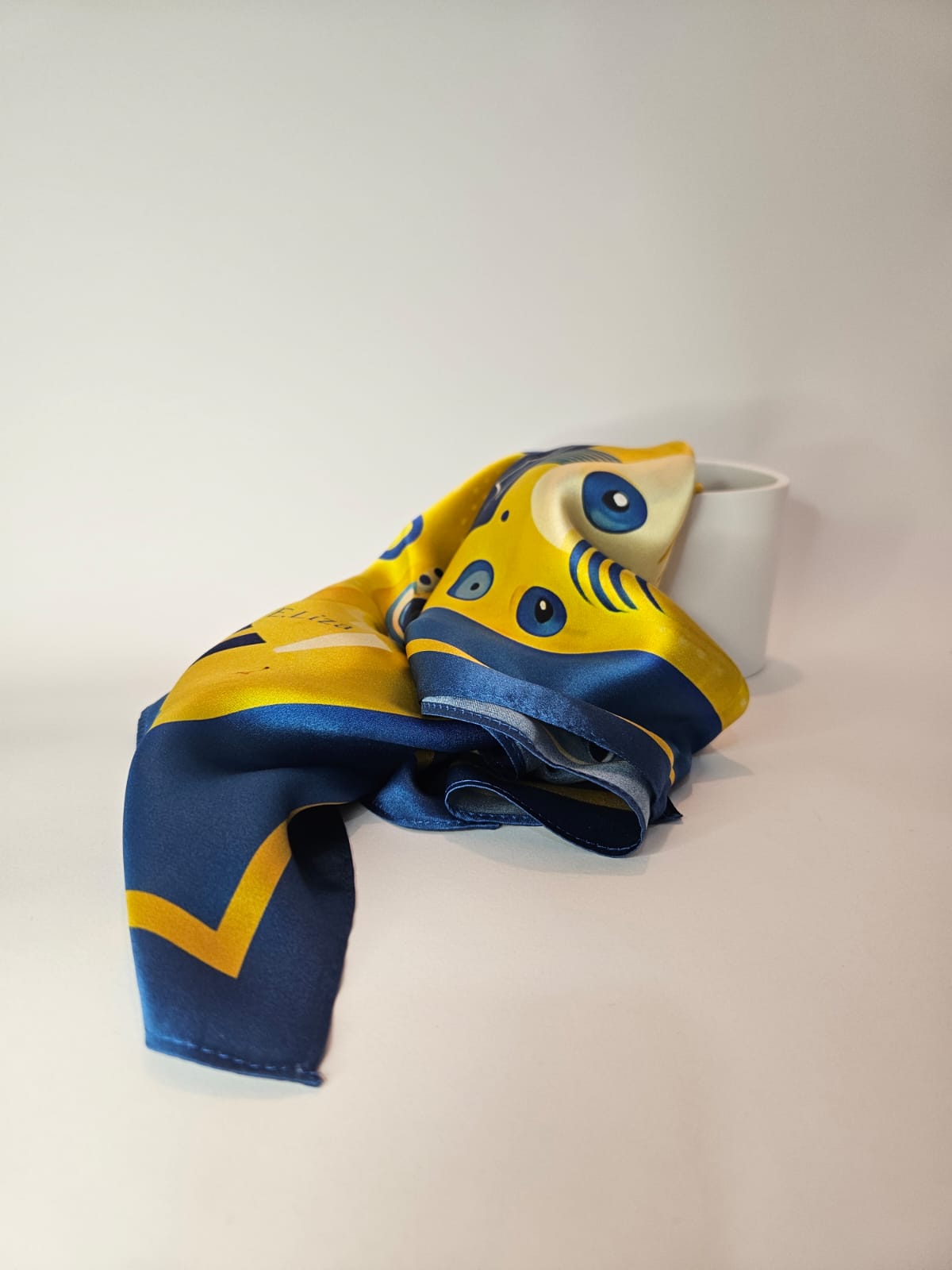 *צעיף מבד 100% משי שנתפר בקפידה, בגודל 68 ס"מ.
