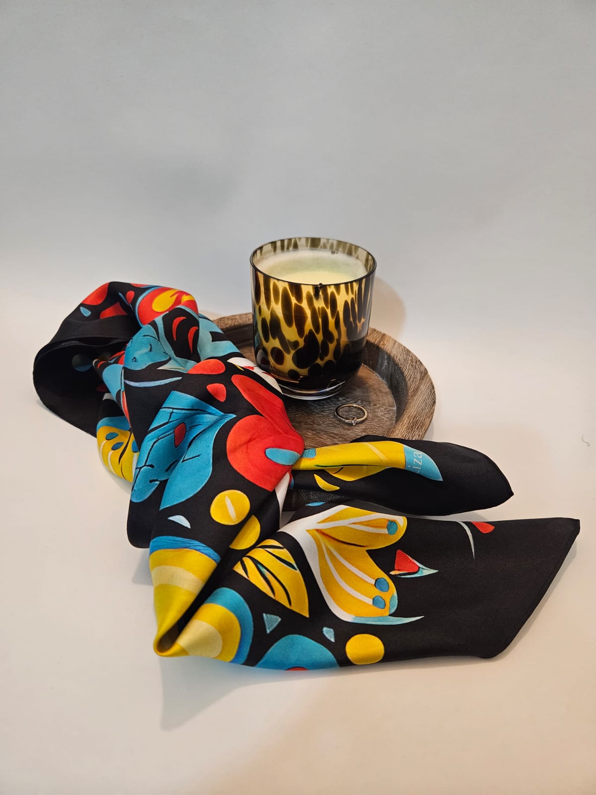 לבבות צבעוניים צמחו מתוך החושך, וכל לב מספר סיפור ומהלל אהבה בגוונים ובעוצמות שונות. החושך הוא רק במה לקרני התקווה ולאהבה שאינה מכירה גבולות. הלבבות הם מקהלה צבעונית המלווה כל פעימה וכל נשימה בחגיגה של החיים. *צעיף מבד 100% משי שנתפר בקפידה, בגודל 68 ס"מ.